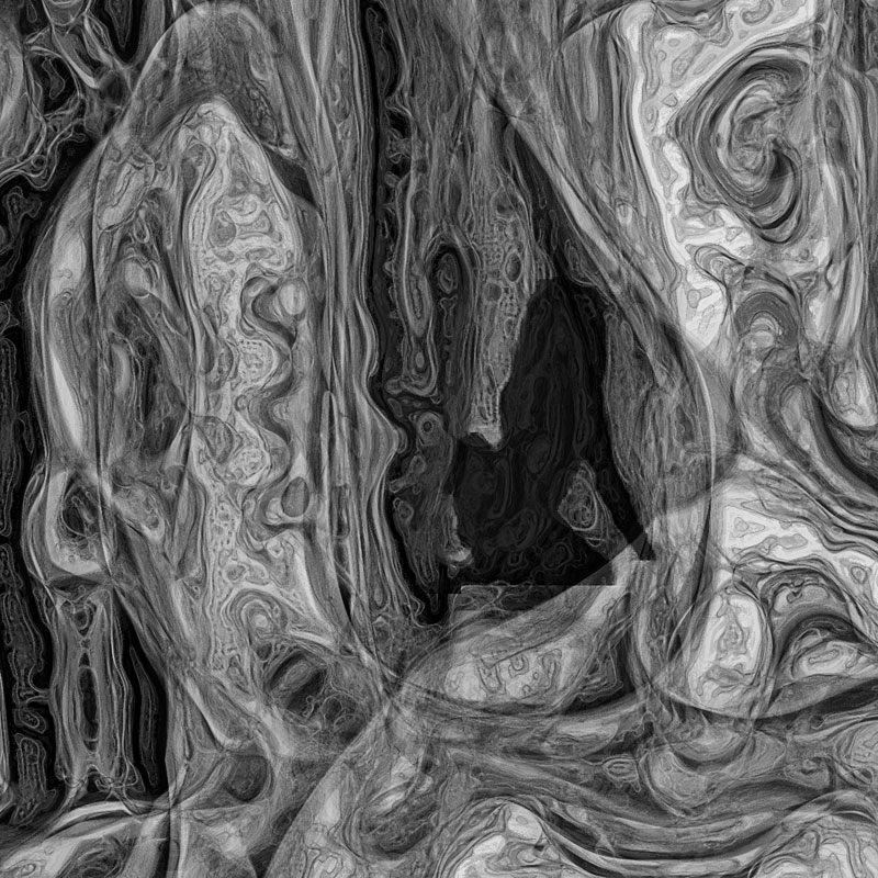 Die reduzierteste und minimalistischste Installation der Serie. Im Vortragsraum mit gestaffelten Sitzmöglichkeiten zeigen wir organische Musterbildungsprozesse in Schwarz-Weiß, die mit den Bewegungen der Tänzerin in Wechselwirkung stehen. Die Verbindung der Elektronischen Livemusik mit den anderen Medien ist intuitiv.